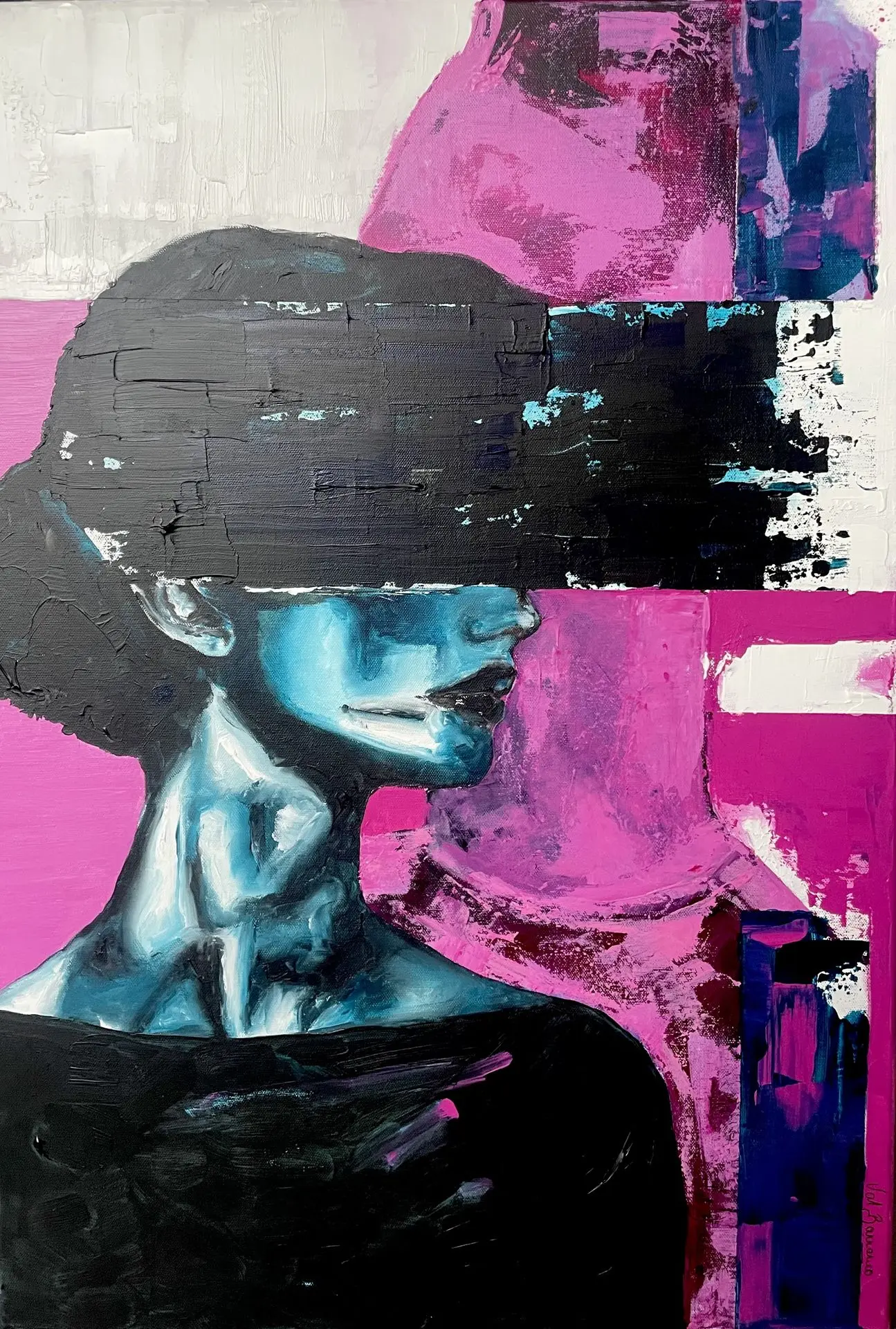 Val Barranco est une artiste lyonnaise dont le travail explore la frontière mouvante entre le visible et l’invisible. Ses toiles, traversées par des éclats de couleurs, des matières lumineuses et des silhouettes qui se dissolvent, sont conçues comme des espaces ouverts, invitant chacun à projeter son propre récit, ses failles, ses élans. Ici, rien n’est figé : le spectateur devient co-créateur.